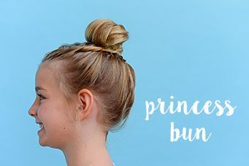 MAYZIE: hair in a severe, tight bun. See below.